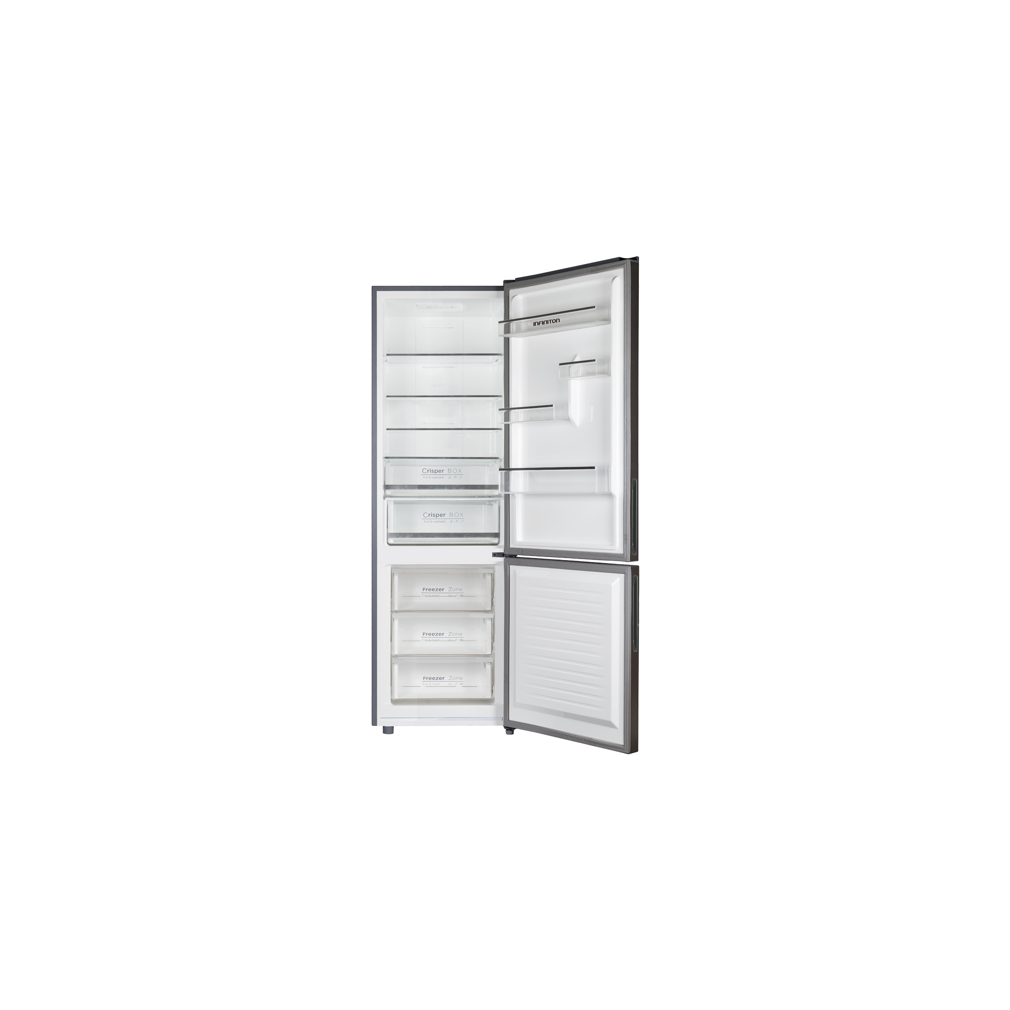 Gracias al botellero de gran altura situado en la puerta, no tendrás problema para guardar cualquier tipo de botella, de envase, o producto alto y delicado. En Infiniton, todo está pensado para tu confort y usabilidad desde el diseño hasta el interior de tu frigorífico.