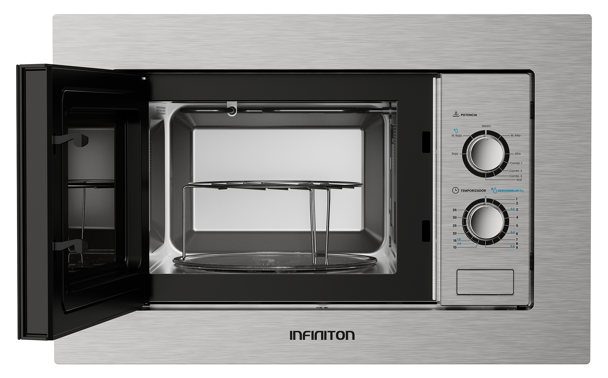 - Accesorios: Plato giratorio interior de cristal / Parrilla circular