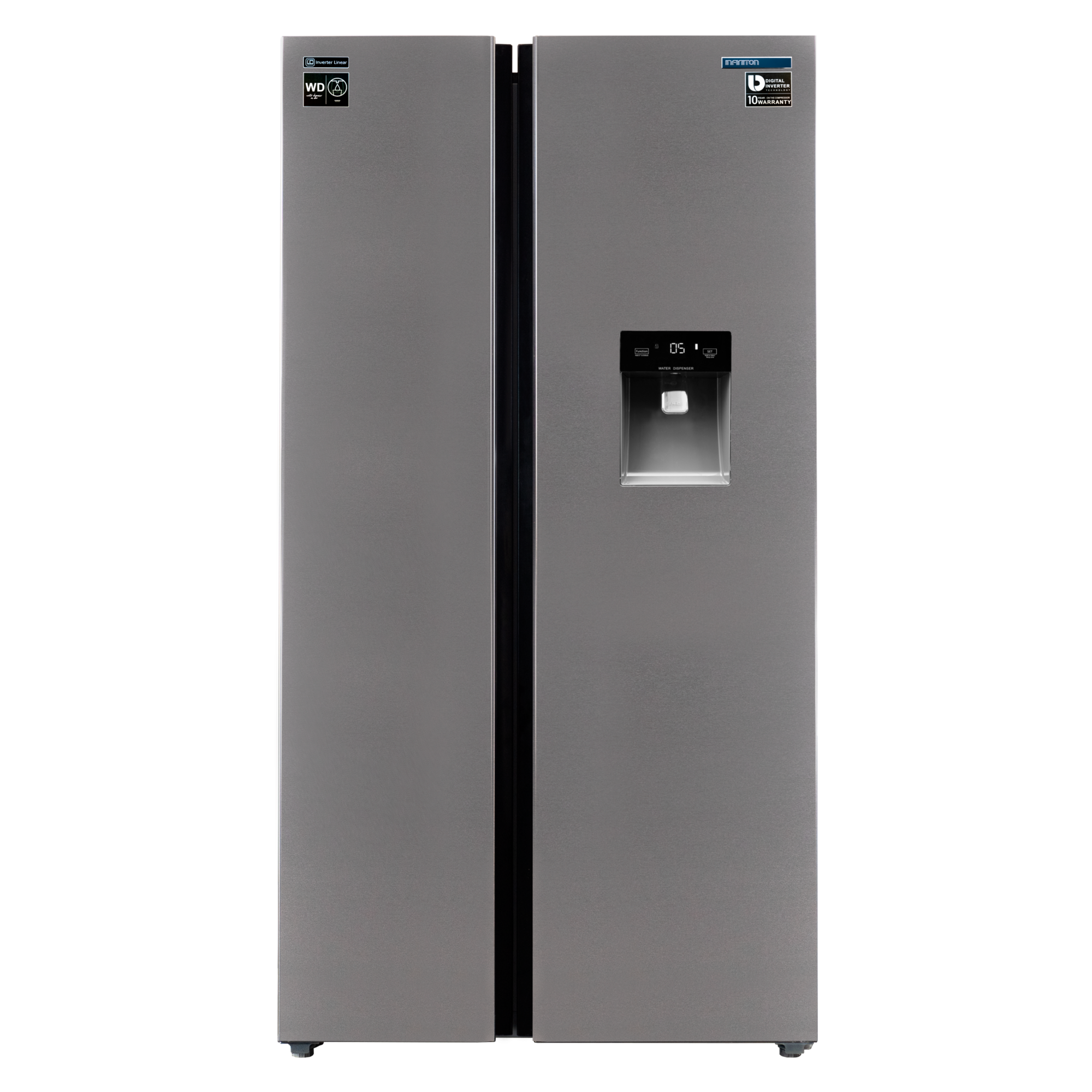 El frigorífico americano Infiniton SBS-503A77XED se caracteriza por tener una capacidad de 503 Litros . Gracias a su clasificación energética E percibirás un importante ahorro energético en tu factura de la luz.