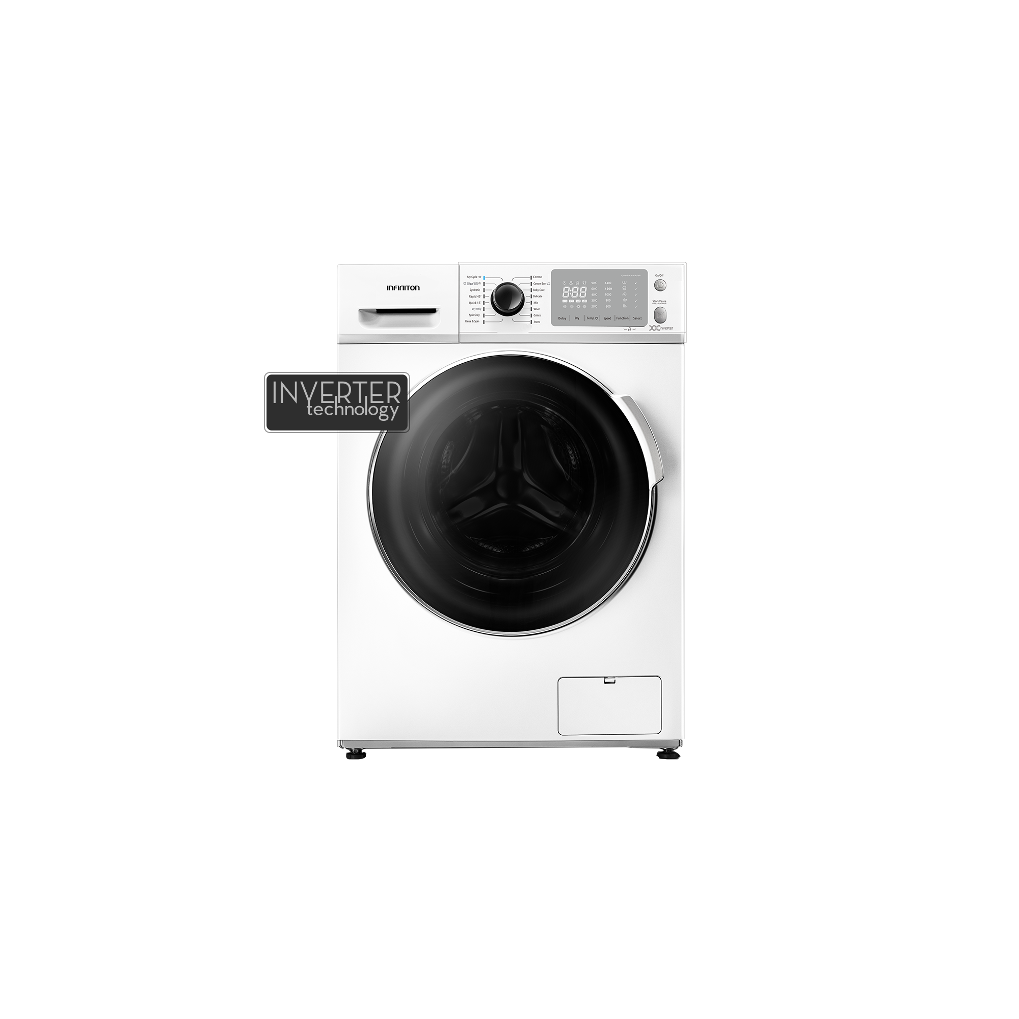Este modelo dispone de una pantalla con luz LED haciendo más fácil su programación. Incluye la función Mi ciclo para personalizar tu lavado habitual.Nadie mejor que tú, para conocer que necesita tu ropa, y desde INFINITON te lo ponemos fácil para configurarlo “una sola vez".