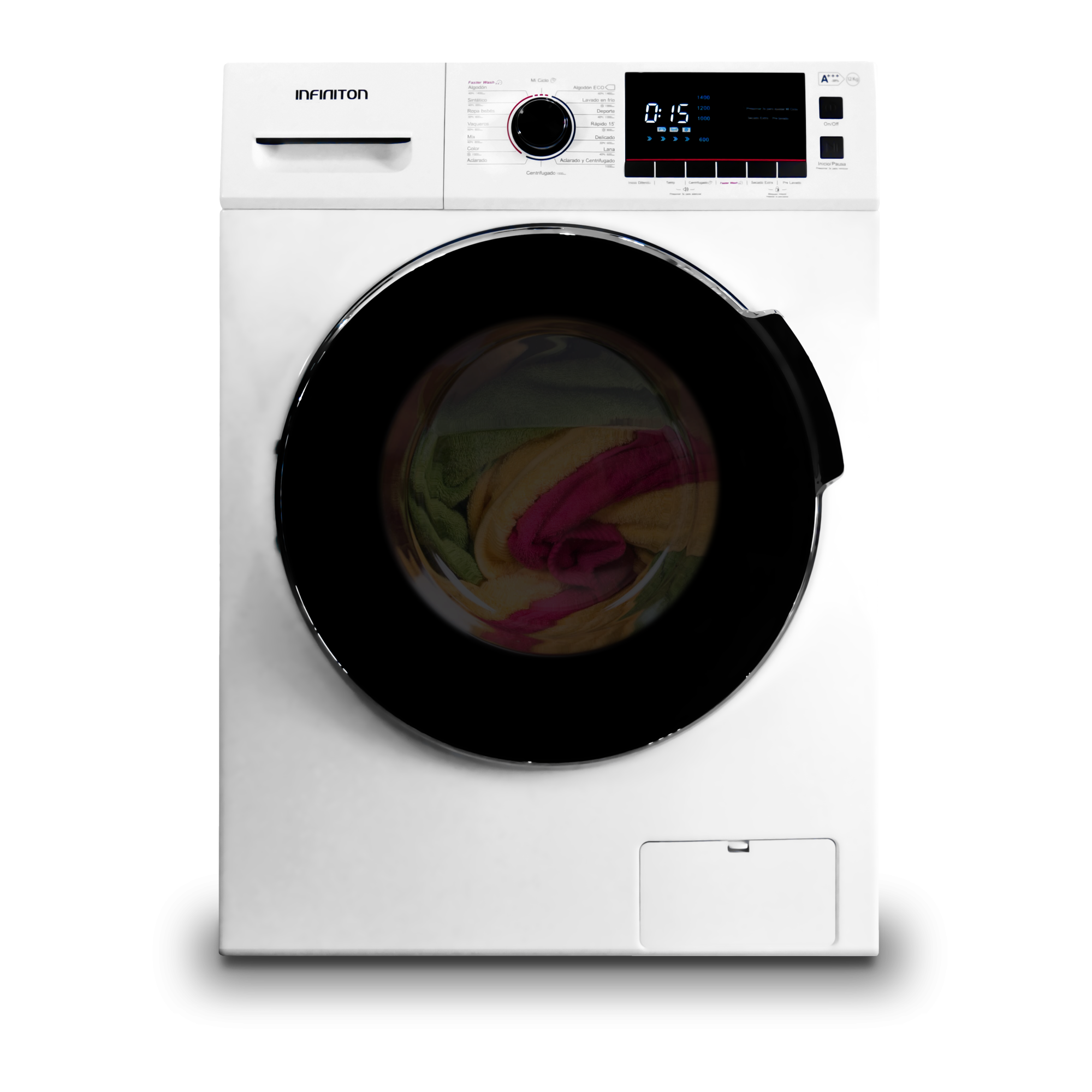 Gracias al programa de secado extra, la lavadora trabajará aún más el secado final de la ropa lavada, quedando muy escurrida para que se termine de secar lo más rápido posible. Para que no tengas que preocuparte de nada, en Infiniton, pensamos en todo.