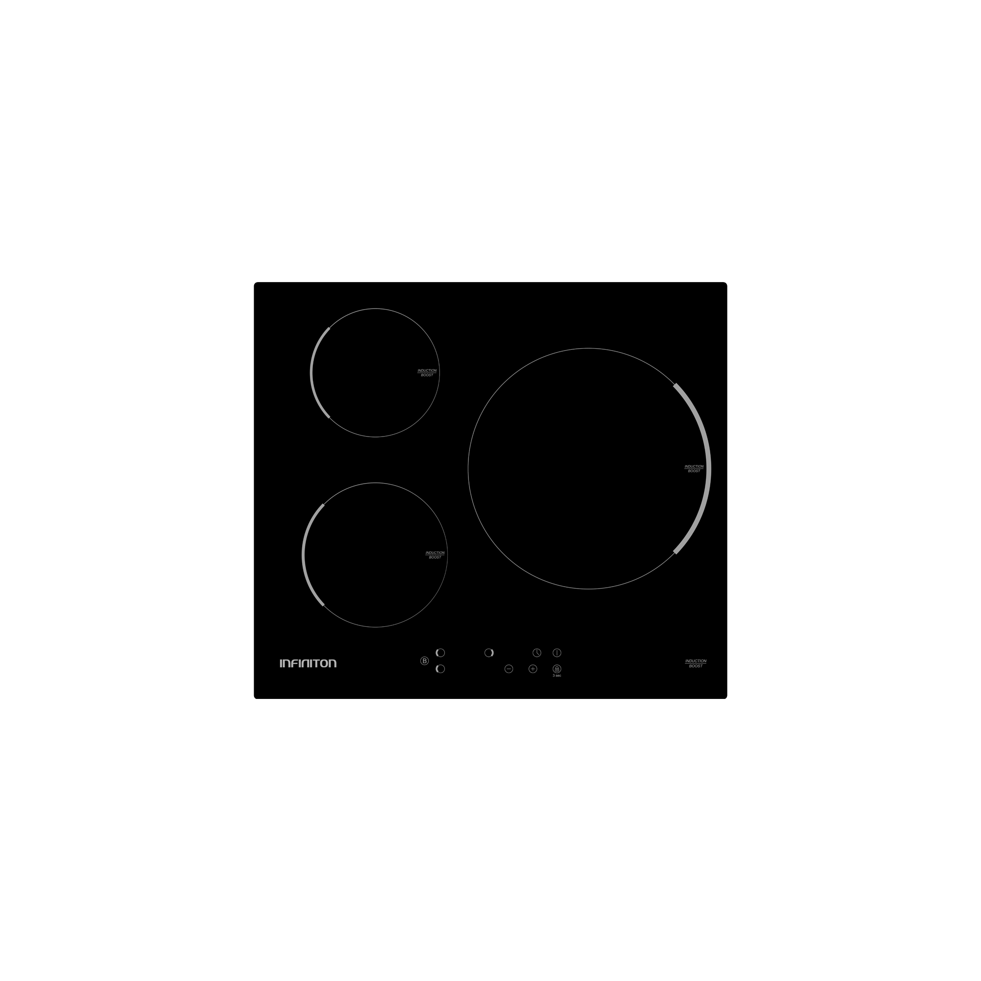 La placa de inducción Infiniton IND-3TPA se caracteriza por disponer de 9 niveles de potencia y por disponer de tres zonas de cocción.